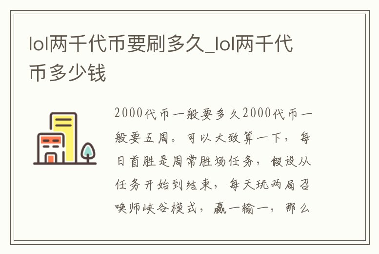 lol兩千代幣要刷多久_lol兩千代幣多少錢