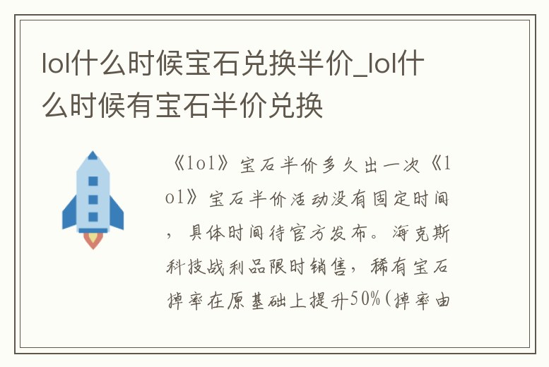 lol什么時候?qū)毷瘍稉Q半價_lol什么時候有寶石半價兌換