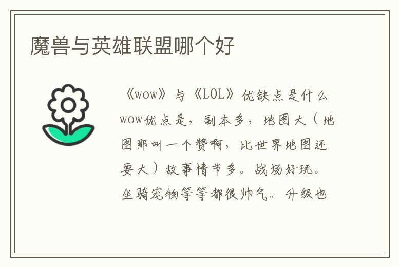 1、魔獸世界和英雄聯(lián)盟哪個好玩
