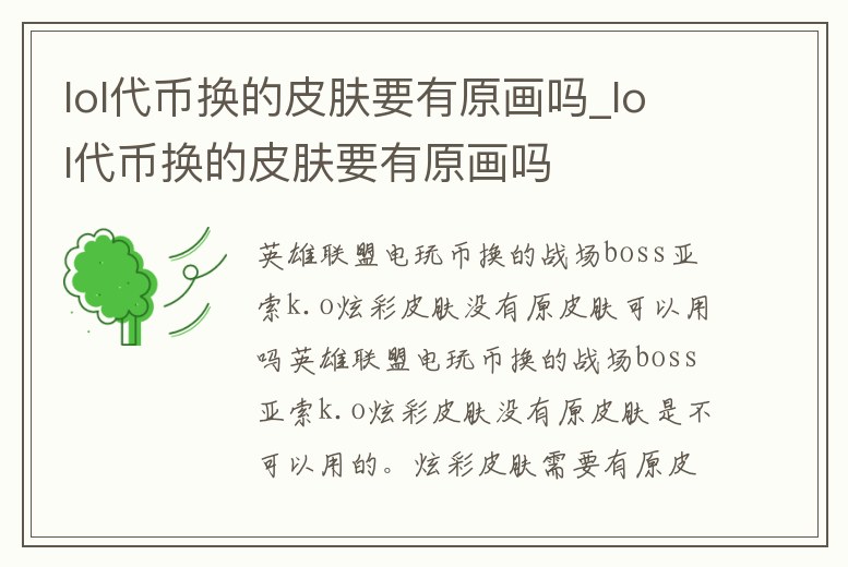 lol代幣換的皮膚要有原畫嗎_lol代幣換的皮膚要有原畫嗎