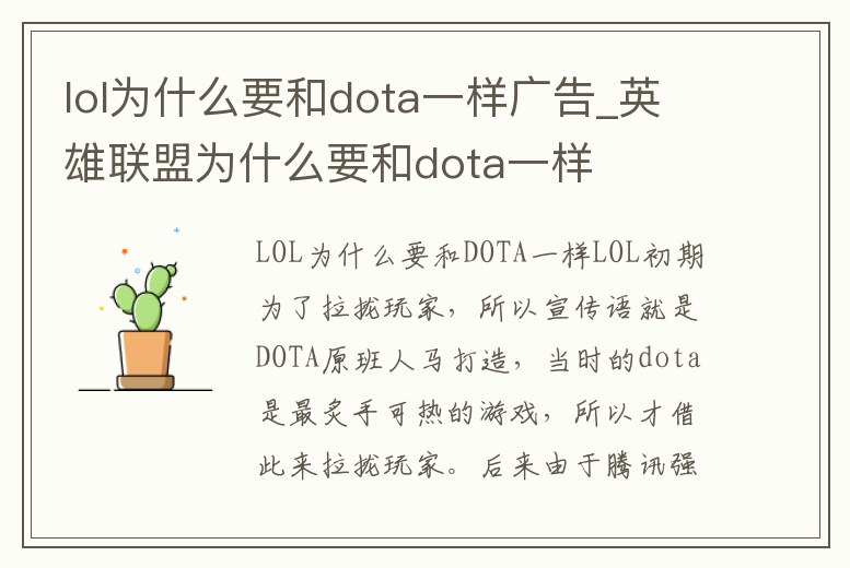 lol為什么要和dota一樣廣告_英雄聯盟為什么要和dota一樣