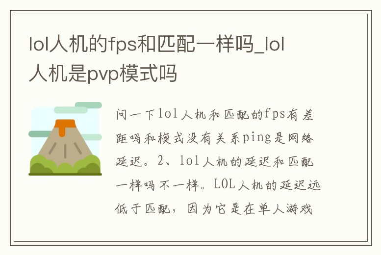lol人機的fps和匹配一樣嗎_lol人機是pvp模式嗎