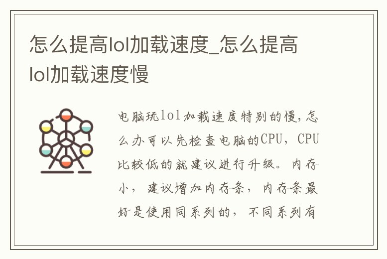怎么提高lol加載速度_怎么提高lol加載速度慢
