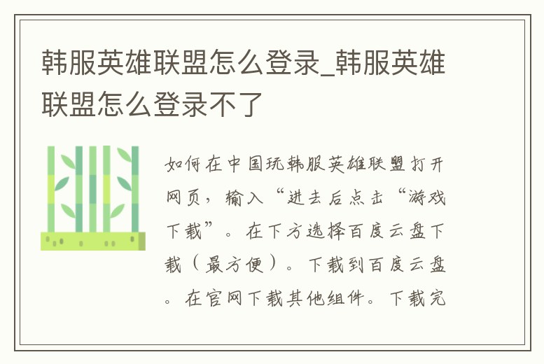 韓服英雄聯(lián)盟怎么登錄_韓服英雄聯(lián)盟怎么登錄不了