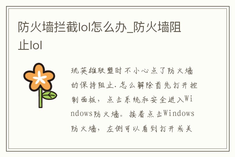 - 防火墻攔截lol怎么辦_防火墻阻止lol