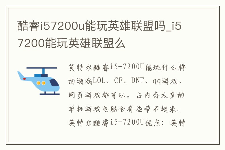 酷睿i57200u能玩英雄聯盟嗎_i57200能玩英雄聯盟么