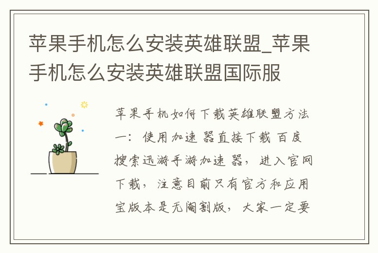 蘋果手機(jī)怎么安裝英雄聯(lián)盟_蘋果手機(jī)怎么安裝英雄聯(lián)盟國際服