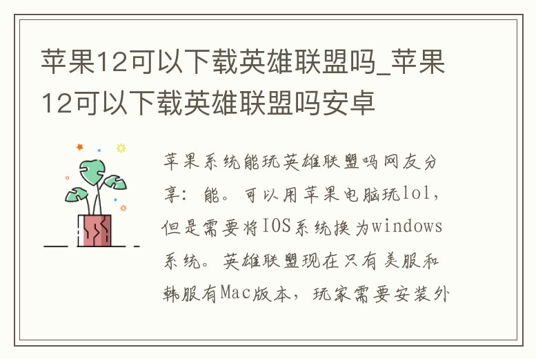 - 蘋果12可以下載英雄聯(lián)盟嗎_蘋果12可以下載英雄聯(lián)盟嗎安卓