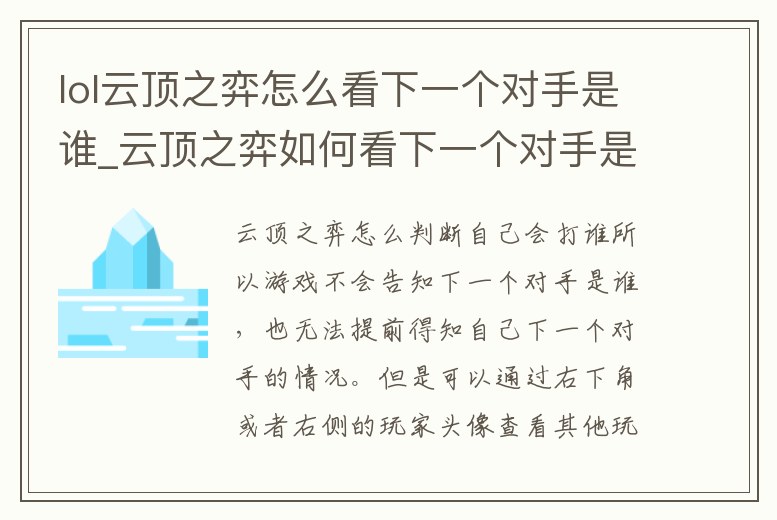 lol云頂之弈怎么看下一個對手是誰_云頂之弈如何看下一個對手是誰