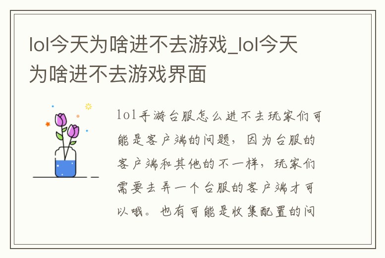 lol今天為啥進不去游戲_lol今天為啥進不去游戲界面