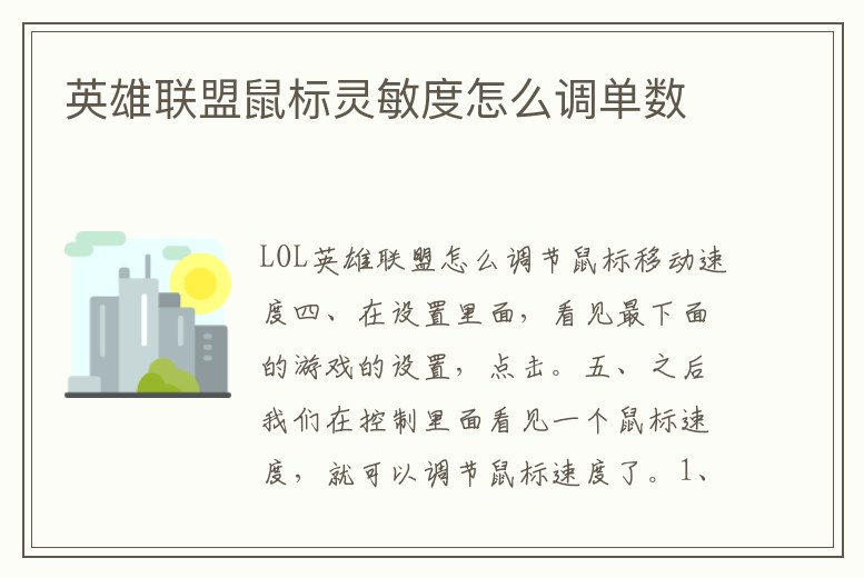 - 英雄聯(lián)盟鼠標(biāo)靈敏度怎么調(diào)單數(shù)