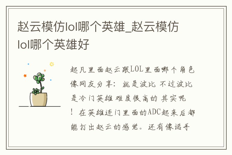 趙云模仿lol哪個英雄_趙云模仿lol哪個英雄好