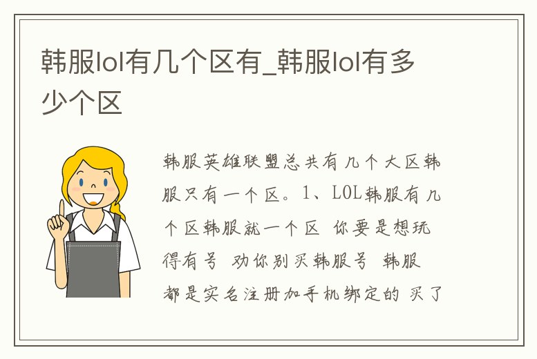 韓服就一個區 你要是想玩得有號 勸你別買韓服號 韓服都是實名注冊加手機綁定的 買了也會被找回 。