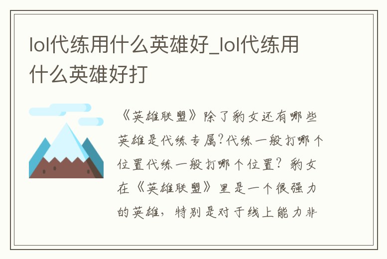 lol代練用什么英雄好_lol代練用什么英雄好打