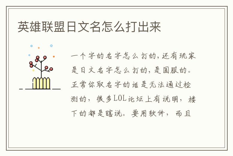 問題一:英雄聯盟,用日語怎么說~ 這是個網絡游戲的名字~ 其實沒有1L這種說法,日本要么寫全稱“League of Legends”,要么寫簡稱“LoL”,片假名外來語什么的都不怎么用, 真要用的話就是 リ`グ?オブ?レジェンド 。