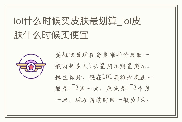 lol什么時候買皮膚最劃算_lol皮膚什么時候買便宜