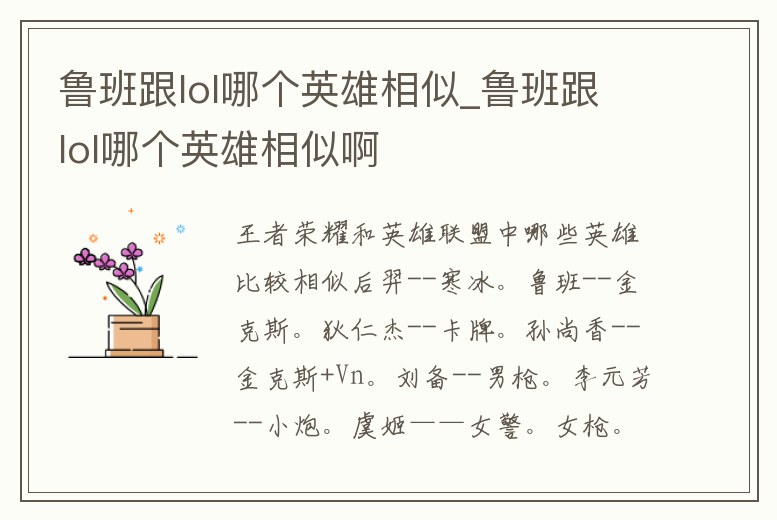 魯班跟lol哪個英雄相似_魯班跟lol哪個英雄相似啊