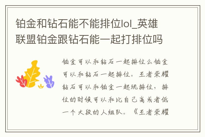 鉑金和鉆石能不能排位lol_英雄聯盟鉑金跟鉆石能一起打排位嗎