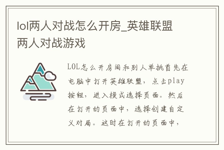 lol兩人對戰怎么開房_英雄聯盟兩人對戰游戲