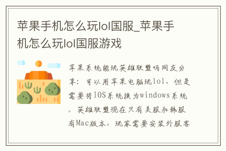 蘋果手機怎么玩lol國服_蘋果手機怎么玩lol國服游戲
