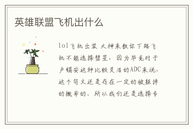 7、英雄聯(lián)盟飛機(jī)出什么裝備