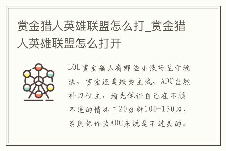 賞金獵人英雄聯盟怎么打_賞金獵人英雄聯盟怎么打開