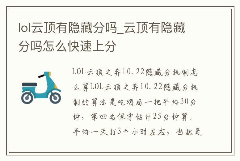 lol云頂有隱藏分嗎_云頂有隱藏分嗎怎么快速上分