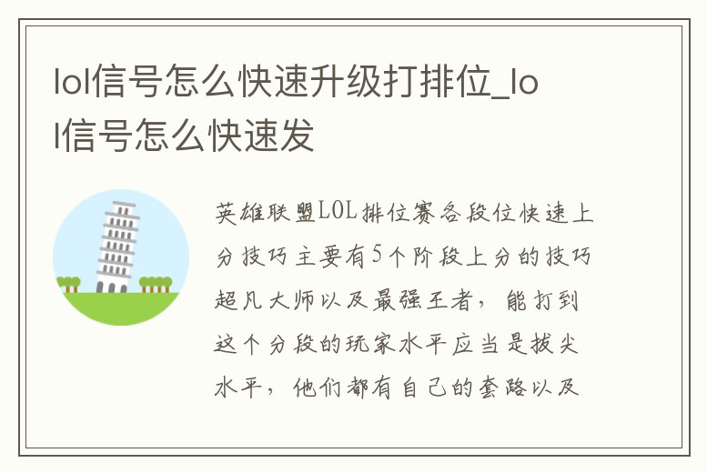 lol信號怎么快速升級打排位_lol信號怎么快速發