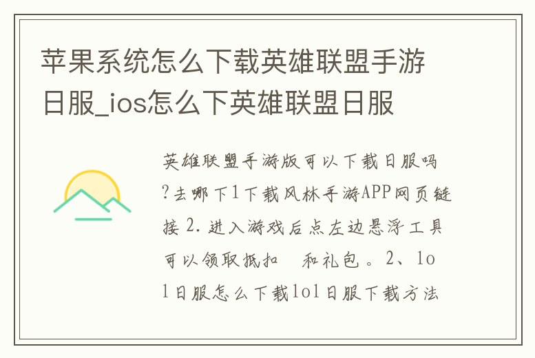 蘋果系統怎么下載英雄聯盟手游日服_ios怎么下英雄聯盟日服