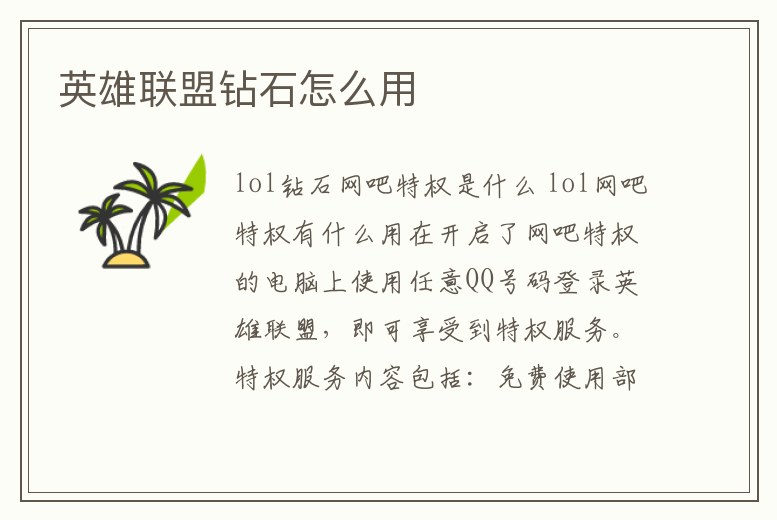 在開啟了網吧特權的電腦上使用任意QQ號碼登錄英雄聯盟,即可享受到特權服務。特權服務內容包括:免費使用部分或全部英雄、免費使用部分皮膚。具體特權內容在不同網吧中有區別,網吧業主可根據玩家需求選擇開啟不同級別的特權服務。