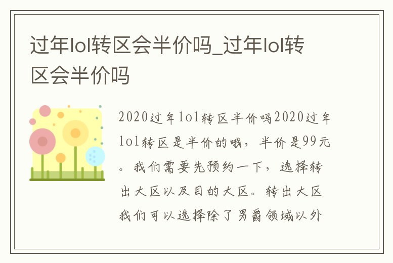 過年lol轉區會半價嗎_過年lol轉區會半價嗎