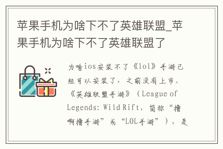 蘋果手機為啥下不了英雄聯盟_蘋果手機為啥下不了英雄聯盟了