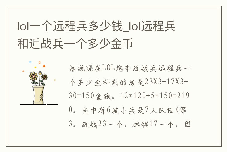 lol一個遠程兵多少錢_lol遠程兵和近戰兵一個多少金幣