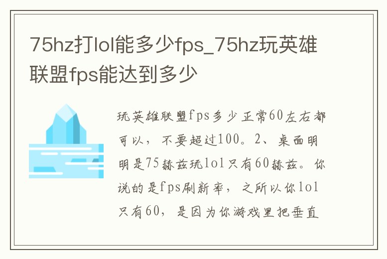 75hz打lol能多少fps_75hz玩英雄聯盟fps能達到多少