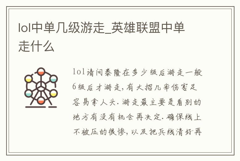 lol中單幾級游走_英雄聯(lián)盟中單走什么
