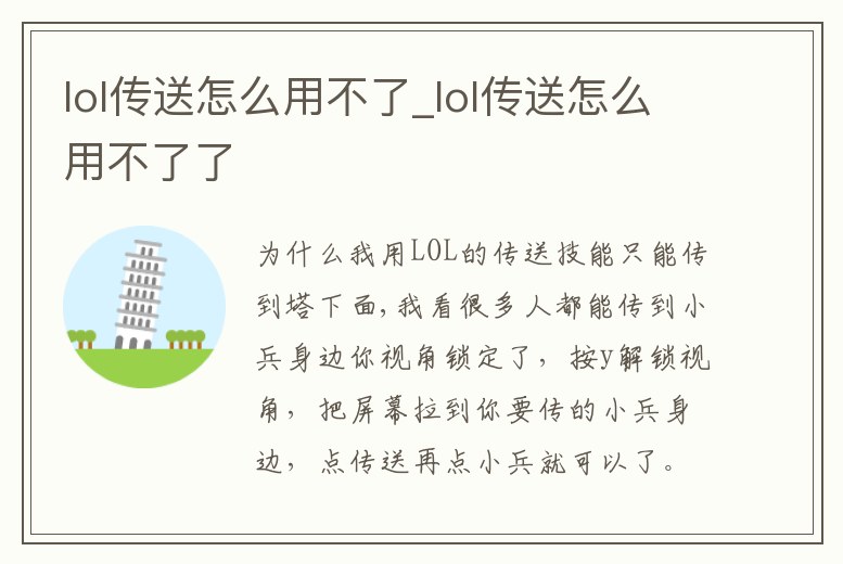 lol傳送怎么用不了_lol傳送怎么用不了了