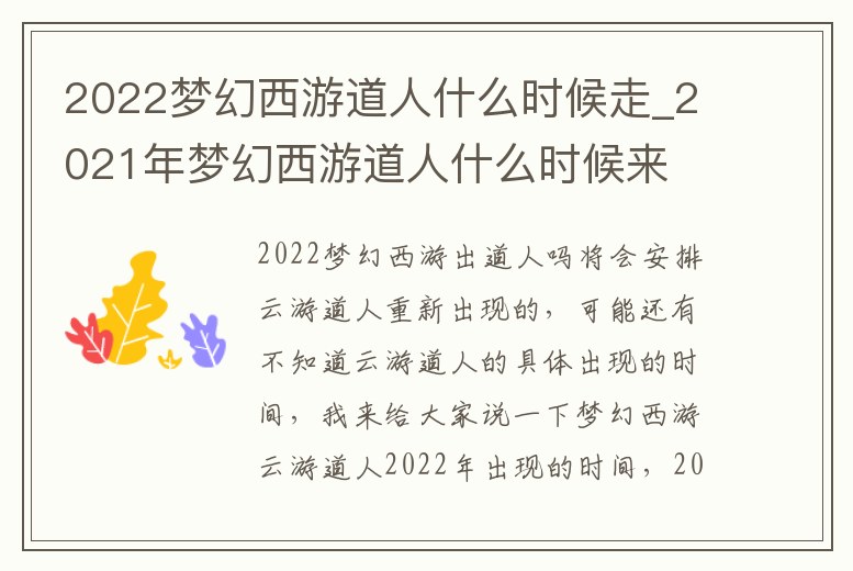 2022夢(mèng)幻西游道人什么時(shí)候走_(dá)2021年夢(mèng)幻西游道人什么時(shí)候來(lái)