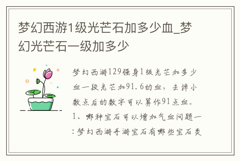 夢幻西游1級光芒石加多少血_夢幻光芒石一級加多少