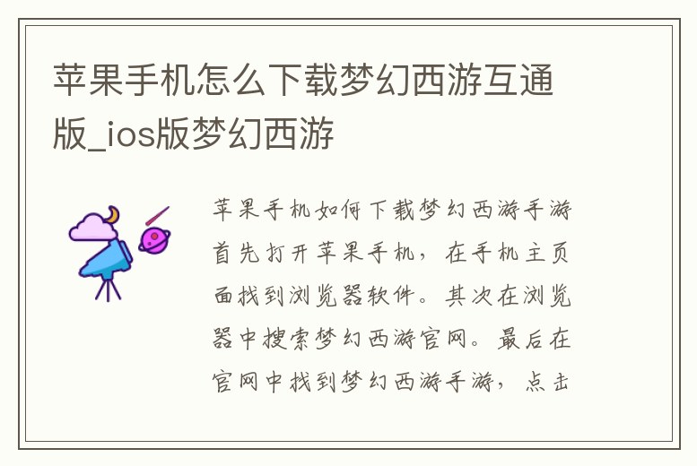 首先打開蘋果手機,在手機主頁面找到瀏覽器軟件。其次在瀏覽器中搜索夢幻西游官網。最后在官網中找到夢幻西游手游,點擊下載即可。