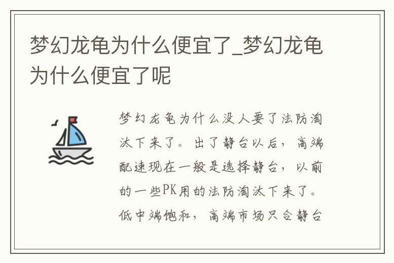 夢幻龍龜為什么便宜了_夢幻龍龜為什么便宜了呢