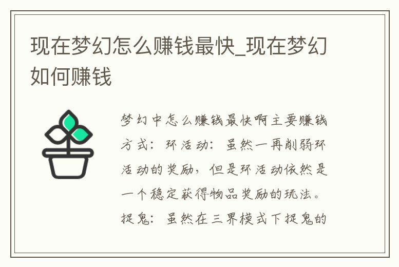 現在夢幻怎么賺錢最快_現在夢幻如何賺錢