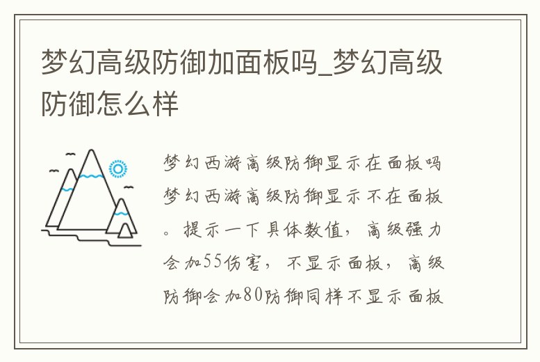 夢幻高級防御加面板嗎_夢幻高級防御怎么樣