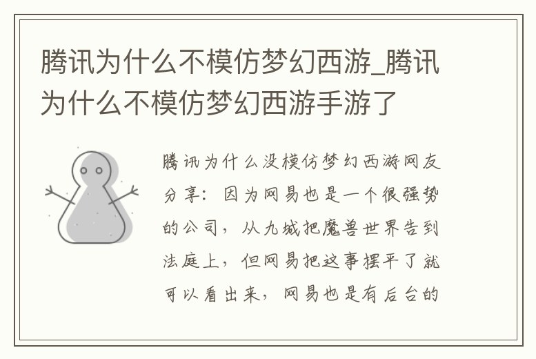 騰訊為什么不模仿夢幻西游_騰訊為什么不模仿夢幻西游手游了