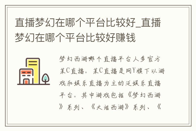 直播夢幻在哪個平臺比較好_直播夢幻在哪個平臺比較好賺錢