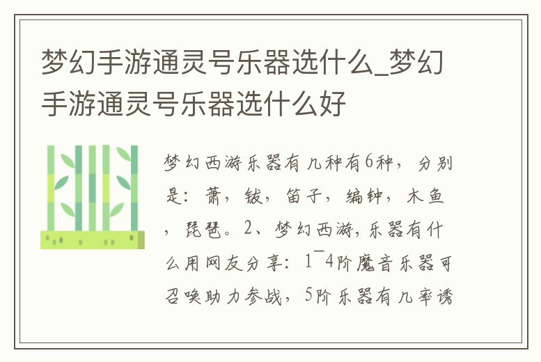 夢幻手游通靈號樂器選什么_夢幻手游通靈號樂器選什么好
