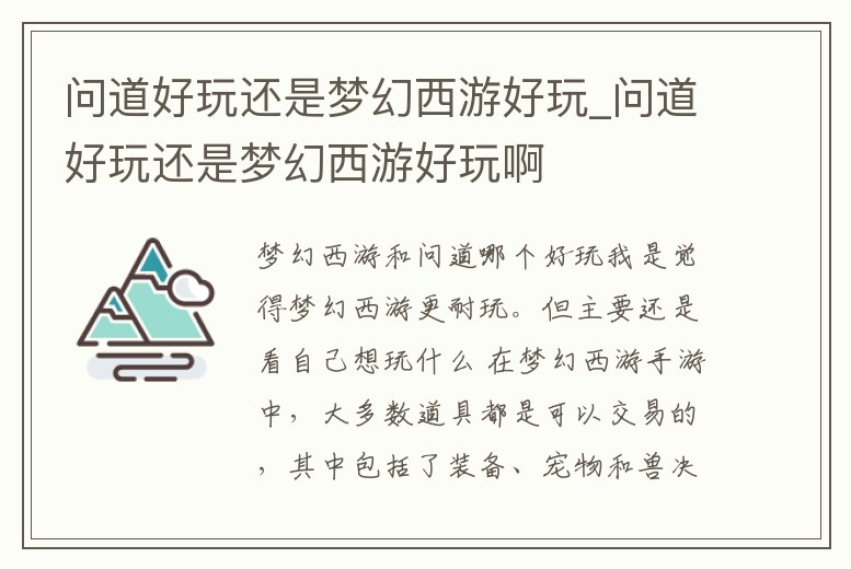 - 問道好玩還是夢幻西游好玩_問道好玩還是夢幻西游好玩啊