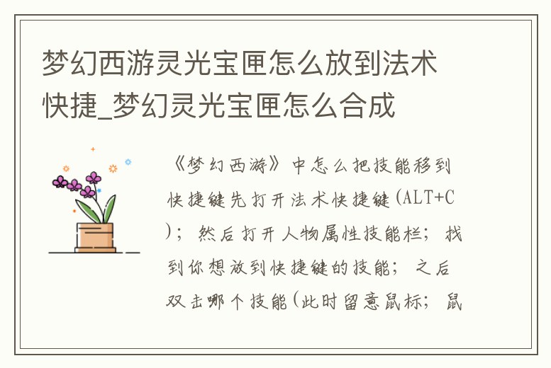 夢幻西游靈光寶匣怎么放到法術快捷_夢幻靈光寶匣怎么合成