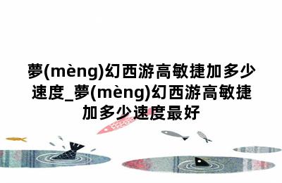 - 夢(mèng)幻西游高敏捷加多少速度_夢(mèng)幻西游高敏捷加多少速度最好