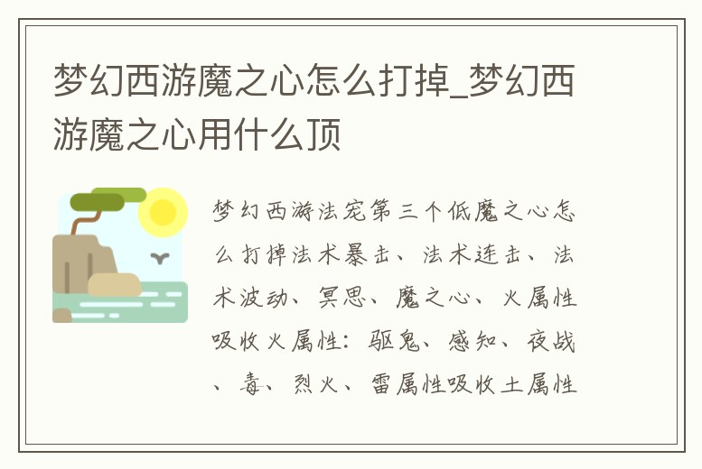 夢幻西游魔之心怎么打掉_夢幻西游魔之心用什么頂