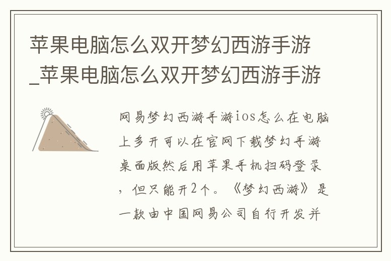 蘋果電腦怎么雙開夢幻西游手游_蘋果電腦怎么雙開夢幻西游手游游戲